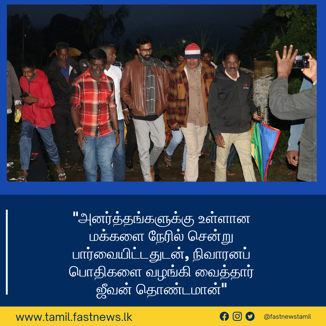 நுவரெலியா மாவட்ட நாடாளுமன்ற உறுப்பினரும், இ.தொ.கா பொதுச் செயலாளருமான ஜீவன் தொண்டமான் அவர்கள் பாதிப்புக்குள்ளான பிரதேசங்களுக்கு நேரில் சென்று பார்வையிட்டதுடன் அவர்களுக்கான உலர் உணவு பொருட்களையும் வழங்கி வைத்தார்.