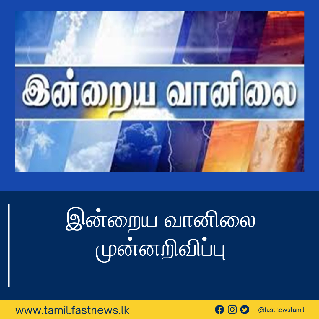 (ஃபாஸ்ட் நியூஸ் | கொழும்பு) – வட மாகாணத்தில் வானம் மேக மூட்டத்துடன் காணப்படுவதுடன் அவ்வப்போது மழையோ அல்லது இடியுடன் கூடிய மழையோ பெய்யக் கூடிய சாத்தியம் காணப்படுவதாக வளிமண்டலவியல் திணைக்களம் தெரிவித்துள்ளது.