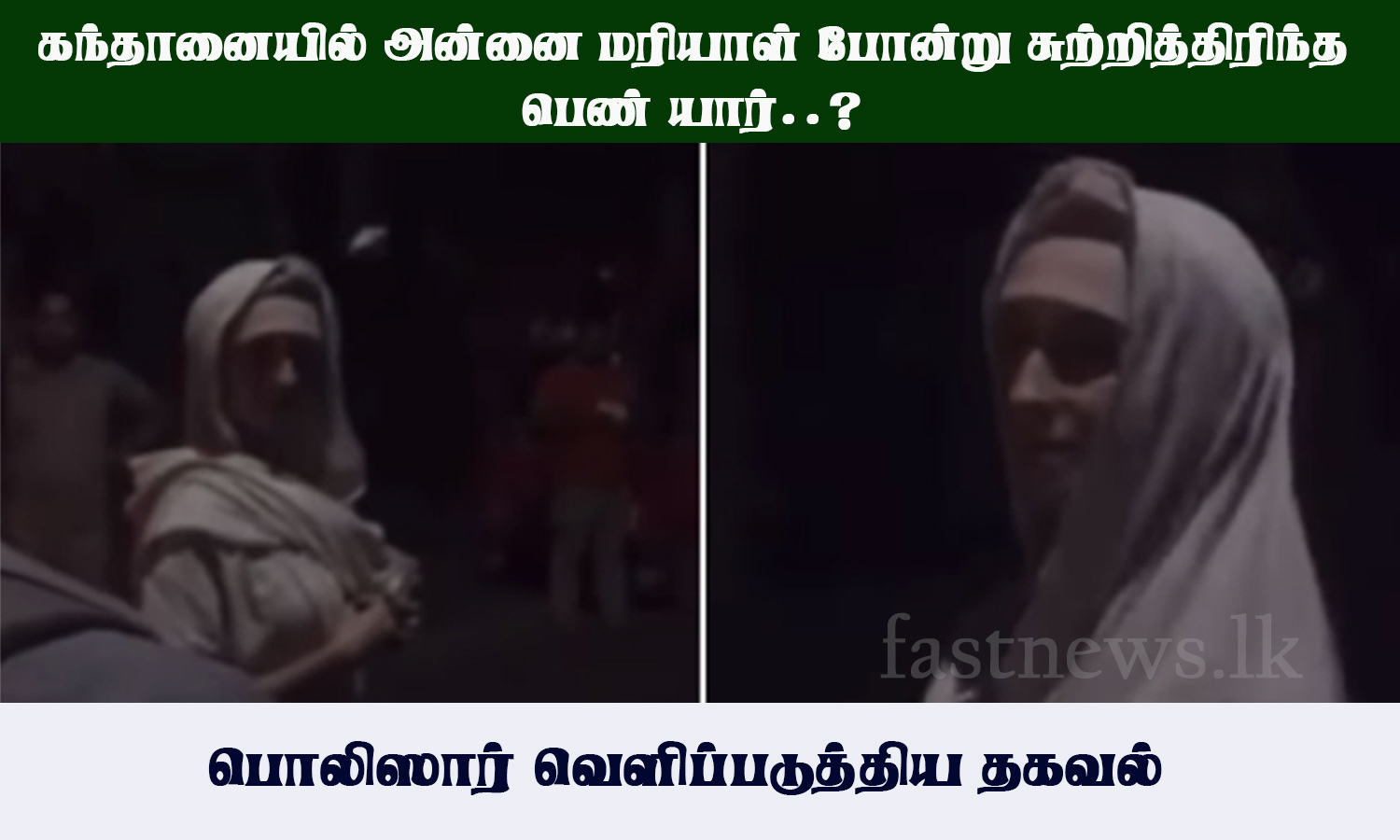 (ஃபாஸ்ட் நியூஸ் | கொழும்பு) – அண்மையில் கந்தானை பிரதேசத்தில் ‘அன்னை மரியாள்’ போன்ற ஆடைகளை அணிந்து சுற்றித்திரிந்த பெண் தொடர்பிலான விபரங்களை பொலிஸார் வெளிப்படுத்தியுள்ளனர்.