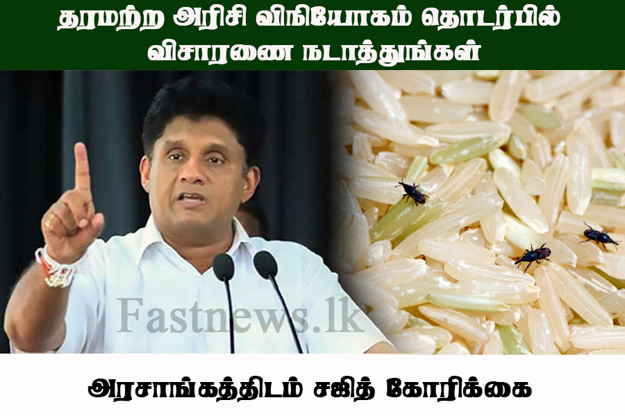 (ஃபாஸ்ட் நியூஸ் | கொழும்பு) – நாட்டின் சில பகுதிகளுக்கு வழங்கப்பட்ட தரமற்ற அரிசி தொடர்பில் விசாரணை நடத்துமாறு அரசாங்கத்திடம் கோரிக்கை விடுக்கவுள்ளதாக எதிர்க்கட்சித் தலைவர் சஜித் பிரேமதாச இன்று (26) பாராளுமன்றத்தில் தெரிவித்தார்.