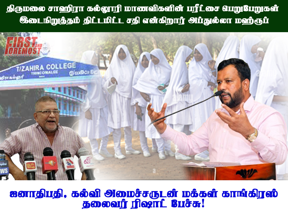 திருமலை சாஹிரா கல்லூரி மாணவிகளின் பரீட்சை பெறுபேறுகள் இடைநிறுத்தம்; திட்டமிட்ட சதி என்கிறார் அப்துல்லா மஹ்ரூப் – ஜனாதிபதி, கல்வி அமைச்சருடன் மக்கள் காங்கிரஸ் தலைவர் ரிஷாட் பேச்சு..!