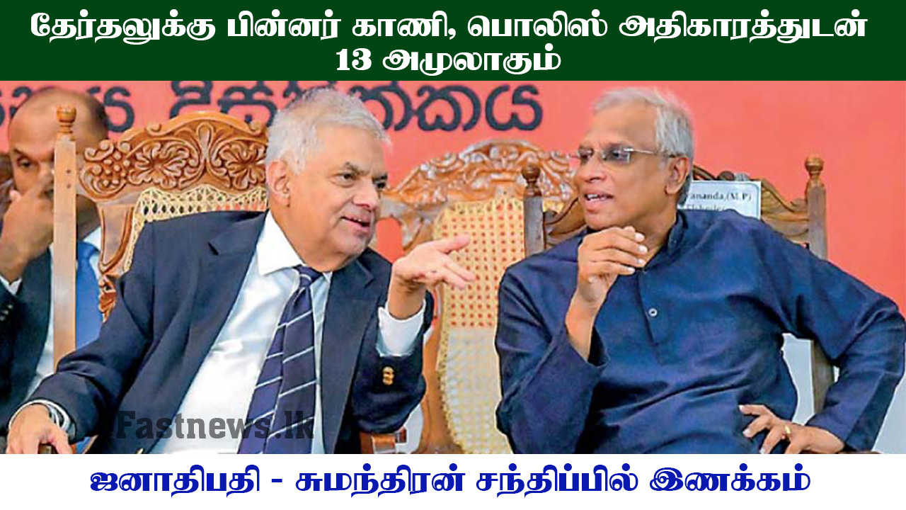 தேர்தலுக்கு பின்னர் காணி, பொலிஸ் அதிகாரத்துடன் 13 அமுலாகும்; ஜனாதிபதி – சுமந்திரன் சந்திப்பில் இணக்கம்..!