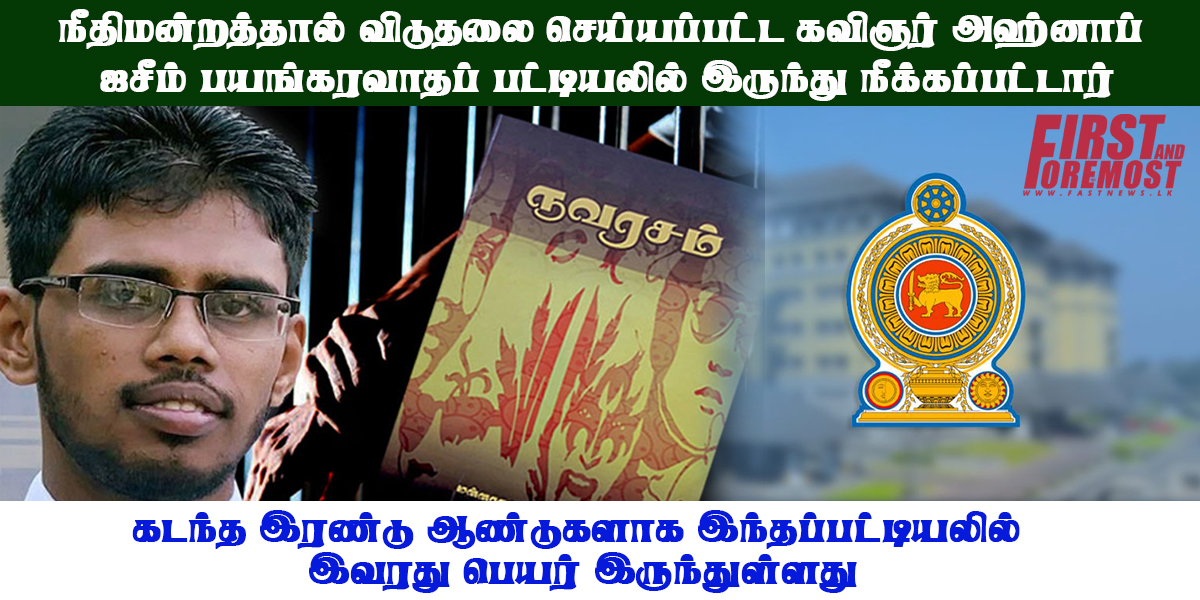 (ஃபாஸ்ட் நியூஸ் | கொழும்பு) – தமிழ் வாசகர்கள் மத்தியில் மன்னாரமுது அஹ்னாஃப் என நன்கு அறியப்பட்ட கவிஞரும் ஆசிரியருமான அஹ்னாப் ஜசீமின் பெயரை, பயங்கரவாத நடவடிக்கைகளுடன் தொடர்புடைய நபர்கள் பட்டியலில் இருந்து நீக்குவதற்கு இலங்கை அரசாங்கம் நடவடிக்கை எடுத்துள்ளது.