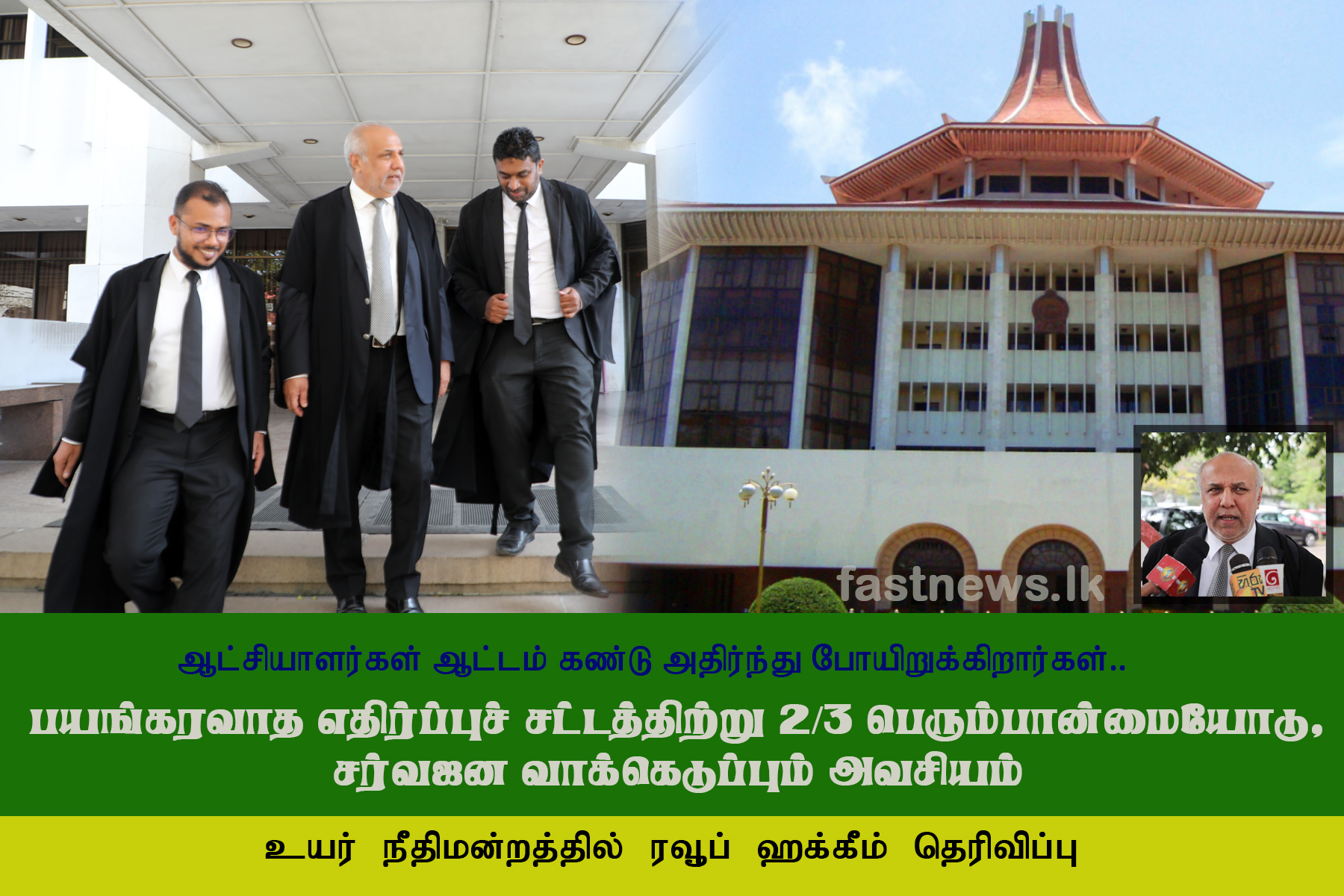 (ஃபாஸ்ட் நியூஸ் | கொழும்பு) – பயங்கரவாத எதிர்ப்பு சட்ட மூலம் அரசியலமைப்புக்கு முற்றிலும் முரணாக இருப்பதால், அதனை சட்டமாக்குவதற்கு பாராளுமன்றத்தில் மூன்றில் இரண்டு பெரும்பான்மையோடு, சர்வசன வாக்கெடுப்பும் அவசியம் என ஸ்ரீலங்கா முஸ்லிம் காங்கிரஸ் தலைவர், சட்ட முதுமாணி ரவூப் ஹக்கீம், செவ்வாய்க்கிழமை (30) உயர்நீதிமன்றத்தில் வாதிட்டார்.