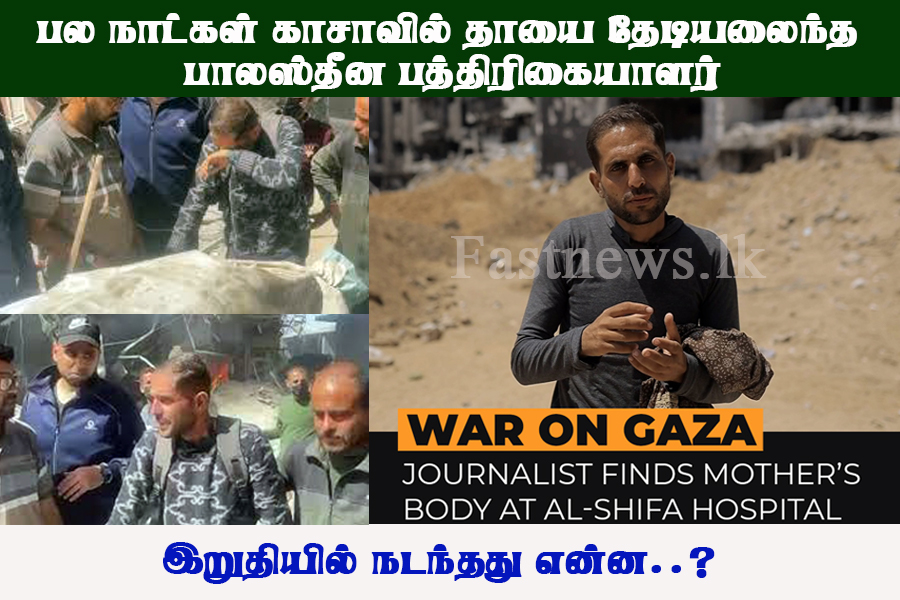 (ஃபாஸ்ட் நியூஸ் | கொழும்பு) – பாலஸ்தீன பத்திரிகையாளர் ஒருவர் பலநாட்கள் தேடியலைந்த பின்னர் தனது தாயின் உடலை காசா மருத்துவமனையின் கண்டுபிடித்துள்ளார்.
