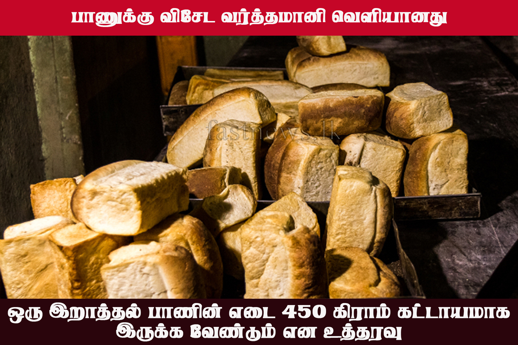 அதன்படி, அனுமதிக்கப்பட்ட 13.5 கிராம் வித்தியாசத்துடன் ஒரு பாணின் நிலையான எடை 450 கிராம் என நிர்ணயிக்கப்பட்டுள்ளது.