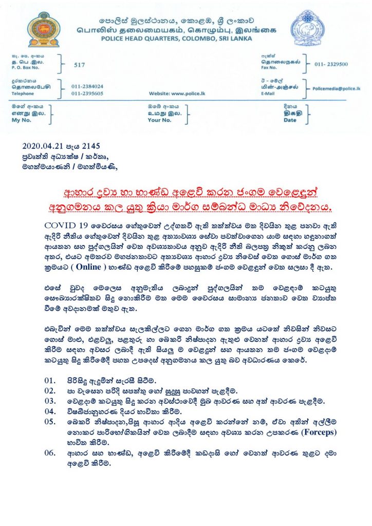 (ෆාස්ට් නිව්ස් | කොළඹ) – පොලිසිය විසින් ඔන්ලයින් ක්රමයට භාණ්ඩ අලෙවි කරන පුද්ගලයන් වෙනුවෙන් මාර්ගෝපදේශමාලාවක් හඳුන්වාදී තිබේ.