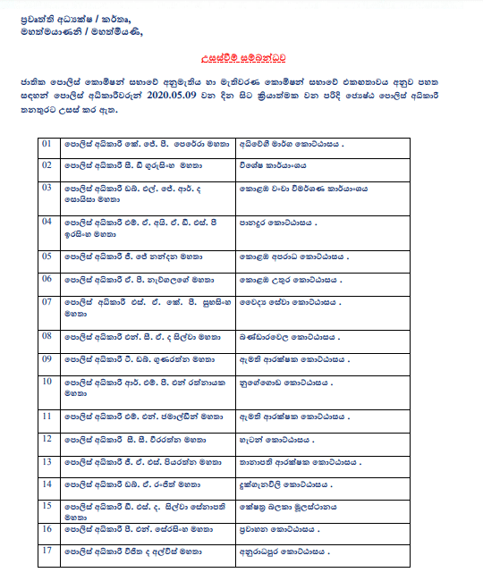 ජාතික පොලිස් කොමිෂන් සභාවේ අනුමැතිය සහ මැතිවරණ කොමිෂන් සභාවේ එකඟතාවය අනුව මෙම උසස් වීම් සිදුකර තිබේ.