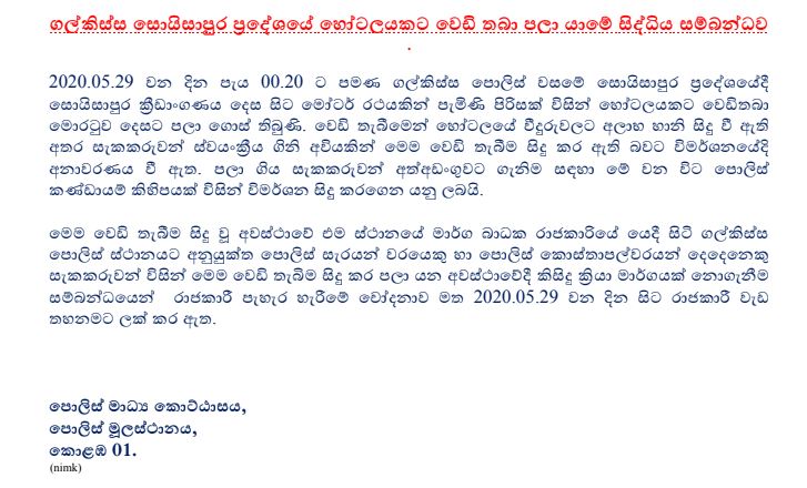 පොලිස් මාධ්‍ය ප්‍රකාශක පොලිස් අධිකාරී ජාලිය සේනාරත්න මහතා පැවසුවේ සැරයන්වරයෙකුගේ සහ කොස්තාපල්වරුන් දෙදෙනෙකුගේ සේවය මෙලෙස අත්හිටුවා ඇති බවයි.