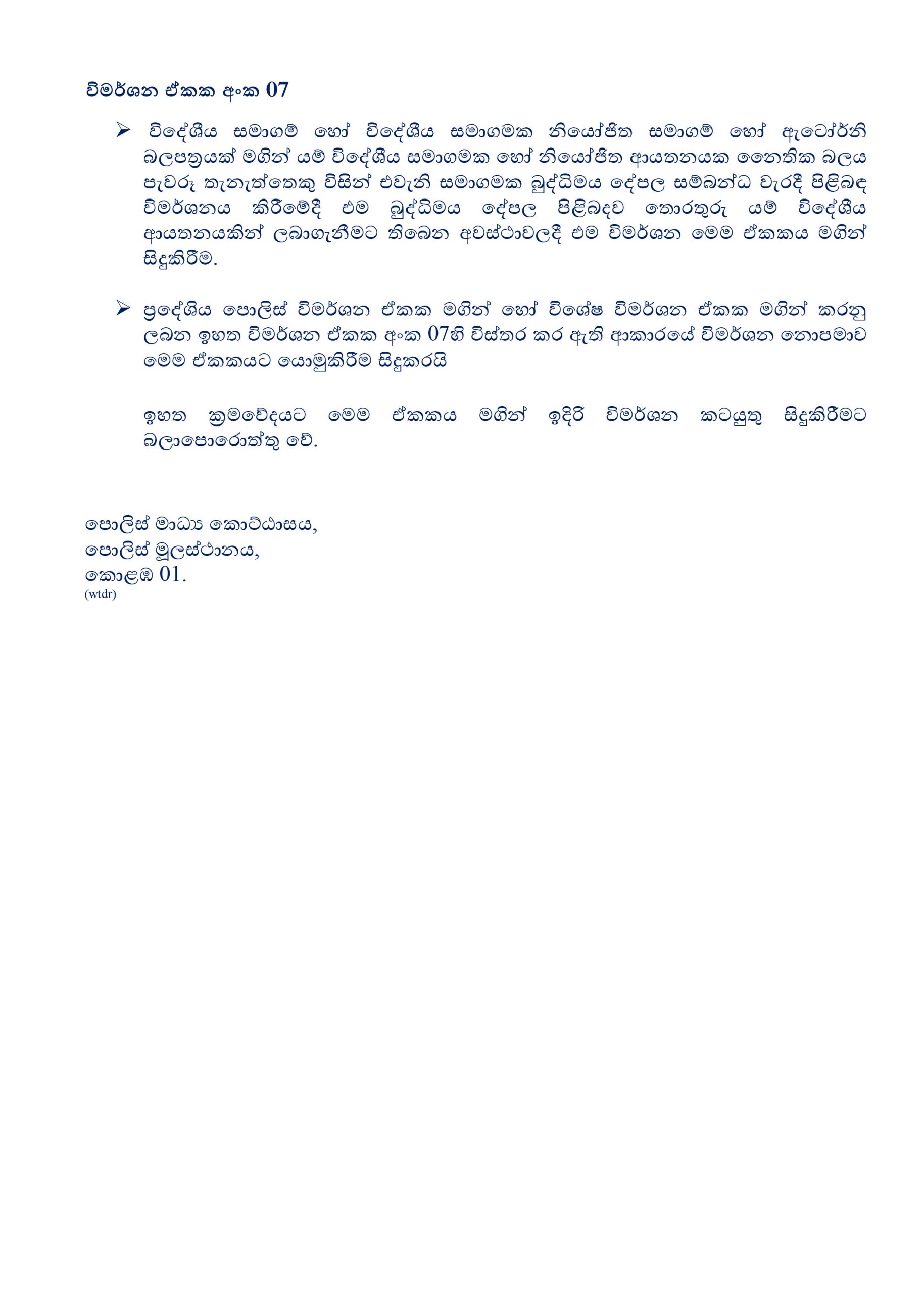වැඩබලන පොලිස්පති සි.ඩී. වික්රමරත්න මහතා විසින් ඊයේ (19) රාත්රියේ අදාළ චක්රලේඛය නිකුත් කර ඇත.