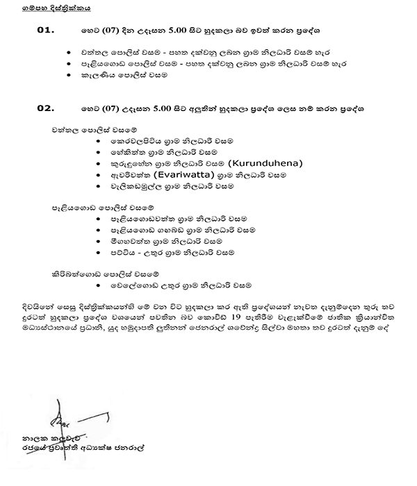 හෙට සිට හුදකලාවෙන් නිදහස් වන හා හුදකලා කෙරෙන ප්‍රදේශ[RELEASE]