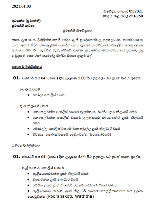 හෙට සිට හුදෙකලා බවින් නිදහස් වන ප්‍රදේශ