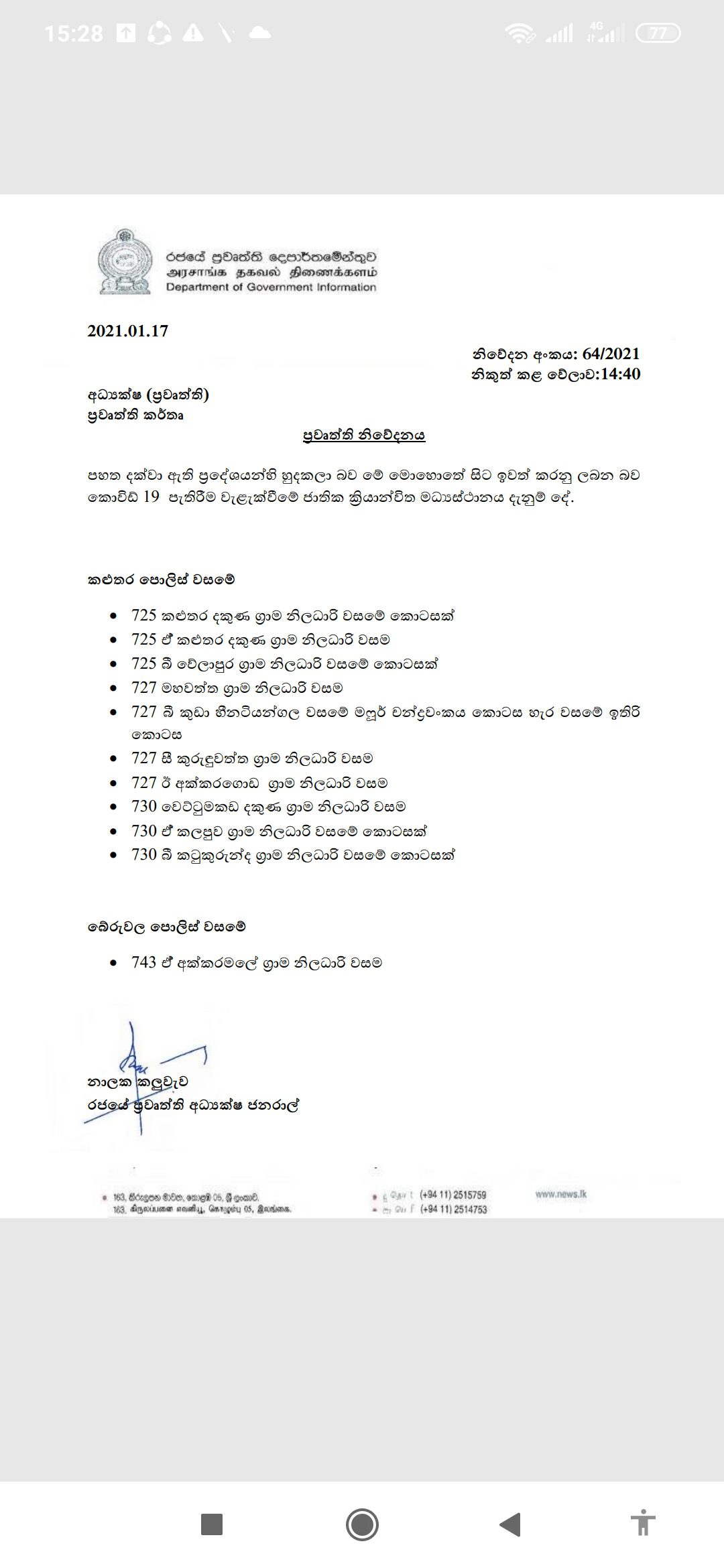 එසේම හුදෙකලා බවින් ඉවත් කෙරෙන කළුතර පොලිස් වසමේ සහ බේරුවල පොලිස් වසමේ ප්රදේශ මෙසේයි.