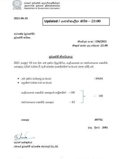 (ෆාස්ට් නිව්ස් | කොළඹ) – අද දින සමස්ත ආසාදිතයින් 268 ක් හදුනාගෙන ඇත.