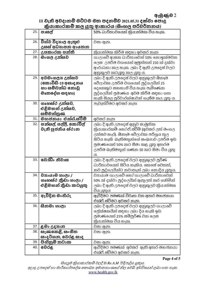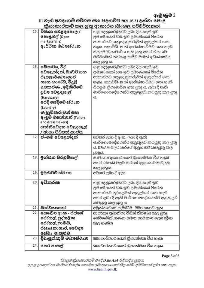 (ෆාස්ට් නිව්ස් | කොළඹ) – කොවිඩ් තුන්වැනි අවදානම් මට්ටම මත පදනම්ව අද (23) සිට 2021 මැයි මස 31 වනදා දක්වා පොදු ක්රියාකාරකම් කළයුතු ආකාරය සම්බන්ධයෙන් රජයෙන් නිවේදනයක් නිකුත් කර ඇත.