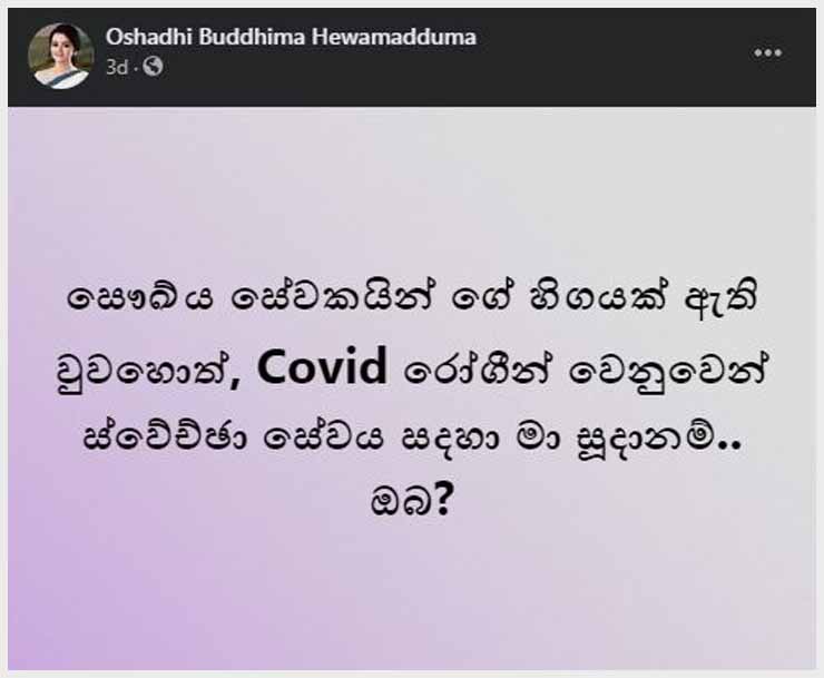 Covid රෝගීන් වෙනුවෙන් ස්වේච්ඡා සේවය සදහා මා සූදානම් – ඕෂධී