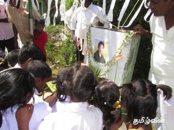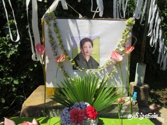 ජයලලිතා ජයරාම්ගේ අභාවය වෙනුවෙන් ලංකාවේ වතුකරයේ දෙමළ ජනතාවද කම්පාවට පත්ව තිබෙන අතර ඇයගේ ඡායාරූප වලට පුෂ්පෝපහාර දක්වමින් ආශිර්වාද පූජාවල නිරත විය.