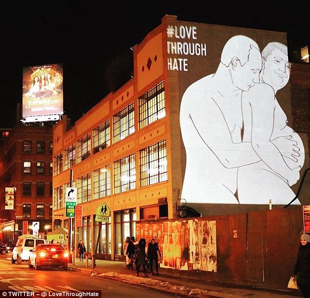 එසේම එය #Lovethroughhate යන හැෂ්ටැග් සහිතව එය ප්රචාරය කර තිබූ අතර ඇමරිකාවේ නිව්යෝර්ක්හි සමලිංගිකයින් වාසය කරන චෙල්සා ප්රදේශයේත් 14th Street හා 8th Avenue හිත් මෙය මුලින්ම දිස්වූ බවත් පසුව ස්ථාන රාශියක දර්ශනය කර ඇති බවත් වාර්තා විය.