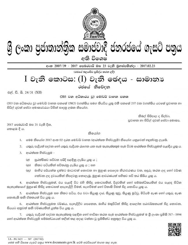 යතුරුපැදි හිස්වැසුම් ගැන මූලික කරුණු 10ක් ගැසට් කරයි…