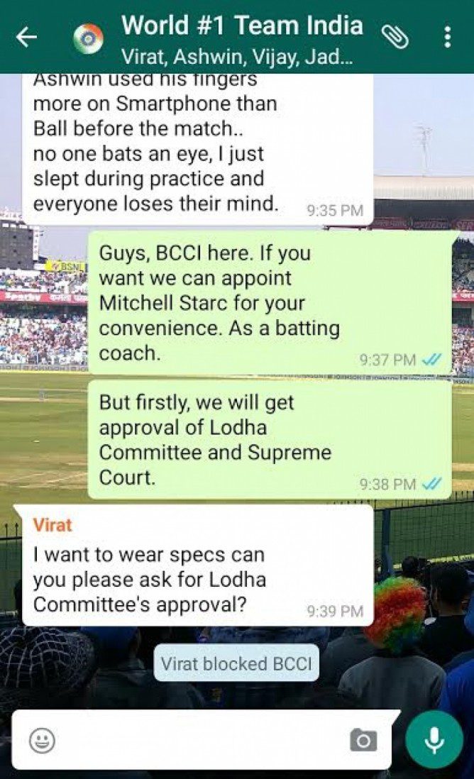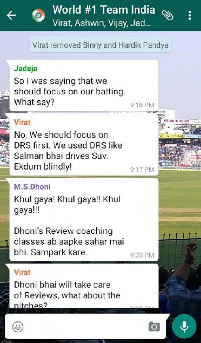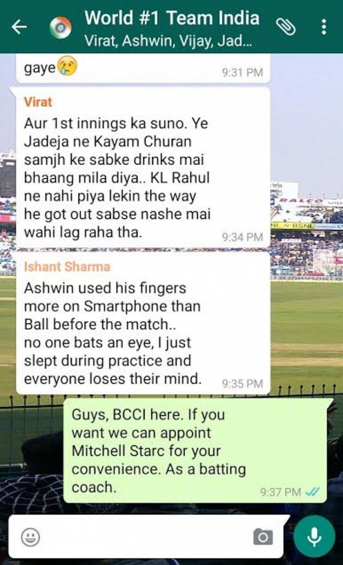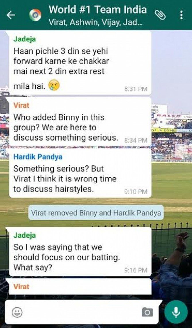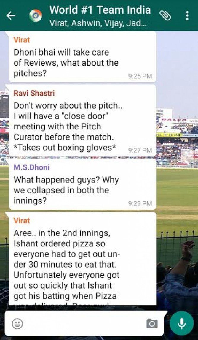කෙසේ වෙතත් මෙම පරාජය සම්බන්ධයෙන් ඉන්දීය ක්‍රීකට් ක්‍රීඩකයින් අතර සිදුවුවා යැයි පැවසේ වට්ස් ඇප් කණ්ඩායම් සංවාදයක් (Group Chat) අන්තර්ජාලයට නිකුත්ව තිබේ.