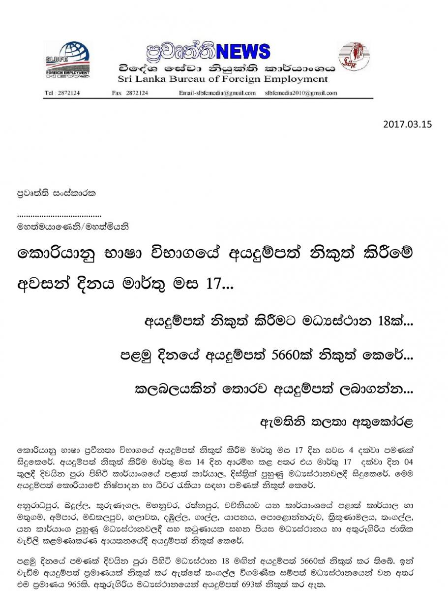 කොරියානු භාෂා විභාගය සම්බන්ධයෙන් විශේෂ නිවේදනයක් නිකුත් කෙරේ …