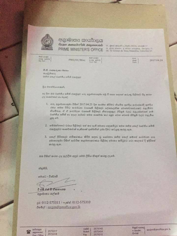 තෙල් වර්ජකයින්ගේ තුනට අගමැති නැමෙයි..