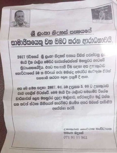 ශ‍්‍රීලනිප මැයි රැළියට යන අයට බෝනස් අවස්ථාවක්…