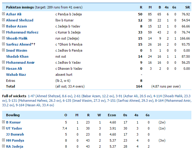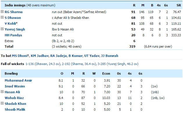 2017 අයි.සී.සී චැම්පියන්ස් කුසලානයේ “B” කාණ්ඩයේ තරගයක් ලෙස ඊයේ (04) ඉන්දියාව හා පාකිස්තානය අතර පැවැති තරගයෙන් ලකුණු 124ක ජයග්රහණයක් වාර්තා කිරීමට ඉන්දීය කණ්ඩායම සමත්විය.