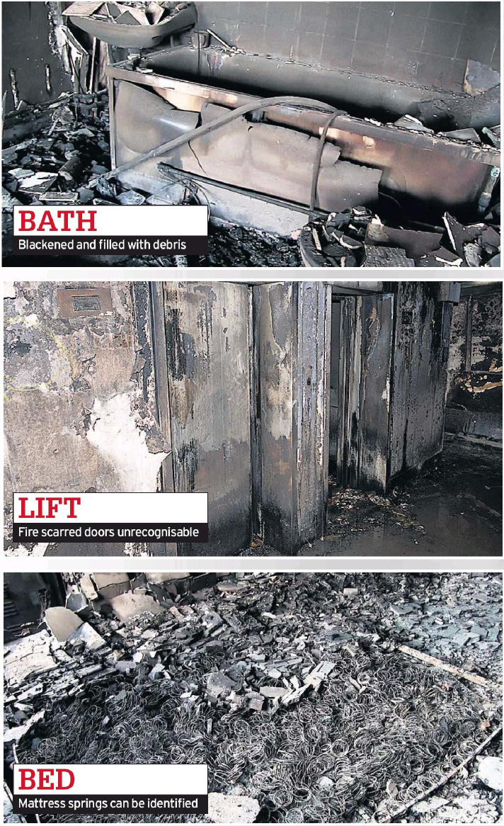 බටහිර ලන්ඩනයෙන් ලැටිමර් මාර්ගයේ බ්රිතාන්ය වේලාවෙන් අළුයම 1.16 පමණ ඇතිවු නිවාස සංකීර්ණයක හටගත් ගින්නෙන් පසු නිවාස සංකීර්ණය ඇතුලත ඡායාරූප කිහිපයක් ලැබී තිබේ.