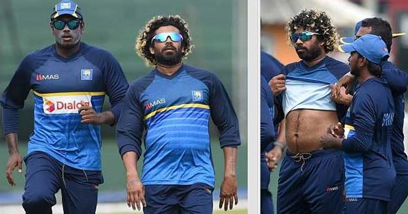 සිම්බාවේ සමග පැවැත්වෙන පළමු එක්දින තරගය සදහා පුහුණුවීම් සිදු කරන අතරතුර වේගපන්දු යවන ක‍්‍රීඩක ලසිත් මාලිංග එහි සිටි මාධ්‍යවේදීන්ට සිය බඩ පෙන්වීය.