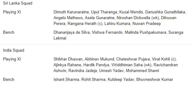 සත්කාරක ශ්රී ලංකාව කණ්ඩායම සමග ගාල්ල ජාත්යන්තර ක්රීඩාංගණයේ අද (26) ආරම්භ වන පළමු ටෙස්ට් ක්රිකට් තරගයේ කාසියේ වාසිය දිනා සිය පළමු ඉනීම ක්රීඩා කරන ඉන්දීය දිවා අහාරය සඳහා තරගය අත්හිටුවන විට එක් කඩුල්ලක් පමණක් දැවී ලකුණු 115 ක් රැස් කර ගැනීමට සමත්ව සිටියි.