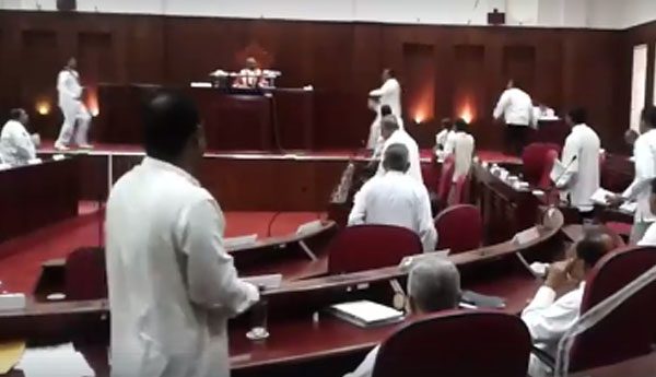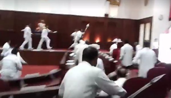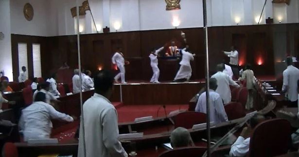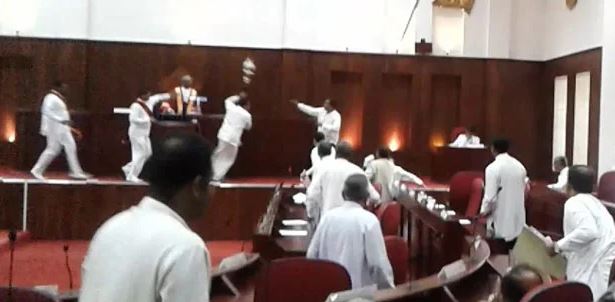 එම අවස්ථාවේදී දකුණු පළාත් සභාවේ දකුණු පළාත් සභා මන්ත්රී (එජාප) චන්දන ප්රියන්ත මහතා සෙංකෝලය රැගෙන සභාවෙන් පිටවීමට තැත්කළ අවස්ථාවේදී ඒකාබද්ධ විපක්ෂය නියෝජනය කරන මන්ත්රීවරුන් ඔහු පසුපස හඹායෑමත් සමග ඇති වූ ගුටිබැට හුවමාරුවත් සමග සෙංකෝලය කොටස් හතරකට කැඩීබිඳී ගොස් ඇත.