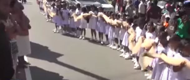 මනමාලිගේ සාරි පොට උස්සන්න පාරට පාසල් ළමුන් 250 යොදවලා.. (ඡායාරූප)