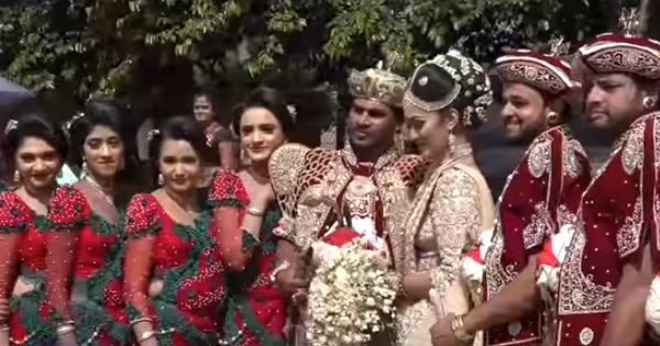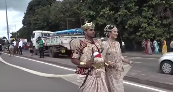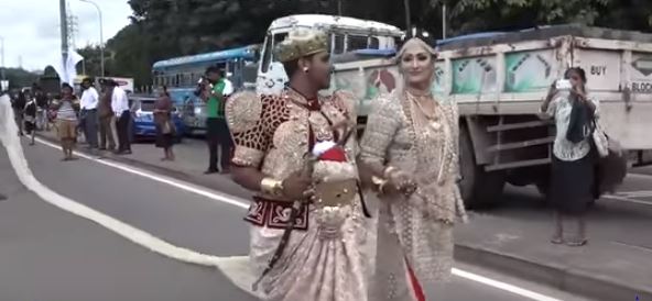 කිලෝ මීටර 3.2ක් දිග සාරි පොටක් සහිත ඔසරිය මනාලිය අදිමින් ඊයේ(21) මහනුවරදී තරුණ යුවලක් විවාහ වූහ.