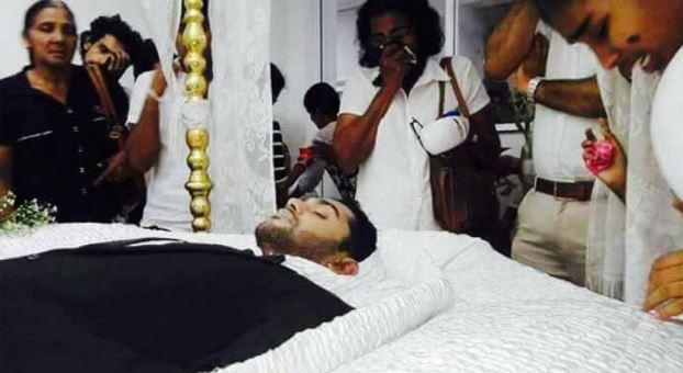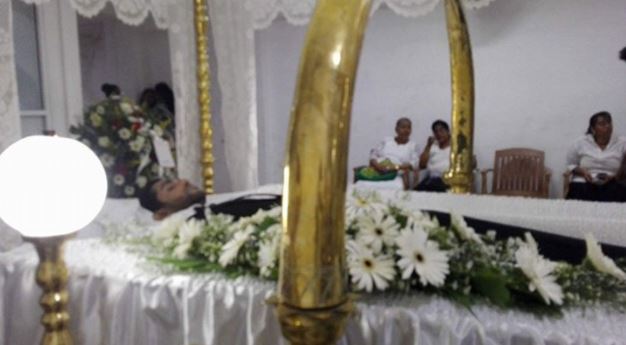 නිට්ටඹුව නිවසේ දසුන්ගේ දේහය තැන්පත් කර ඇති අයුරු පහතින්..
