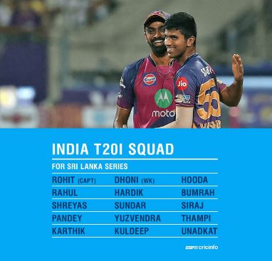 සංචාරක ශ්රි ලංකා කණ්ඩායම සමඟ දෙසැම්බර් 20 වැනිදා ආරම්භ වීමට නියමීත තරග තුනකින් සමන්විත විස්සයි 20 තරගාවලිය සඳහා ඉන්දීය සංචිතය නම් කර තිබේ.