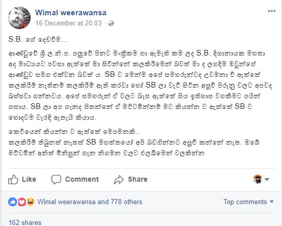 එස්.බී.ගේ ප්රකාශයට විමල් වීරවංශගෙන් පිළිතුරක්.. (ඡායාරූප)