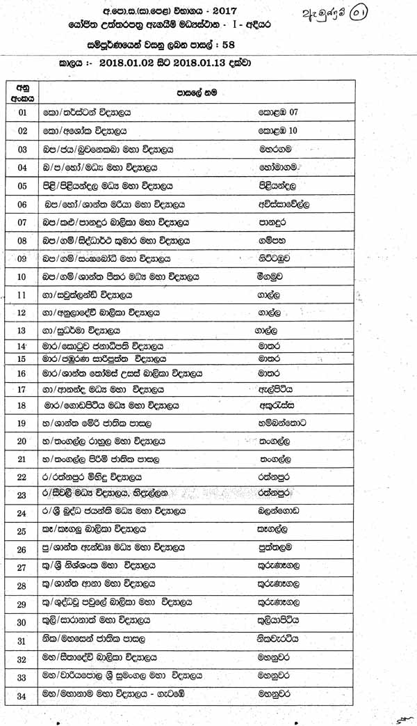 පළමු පාසල් වාරය ජනවාරි 02 ඇරඹේ – 58 ක් 15 වැනිදා..
