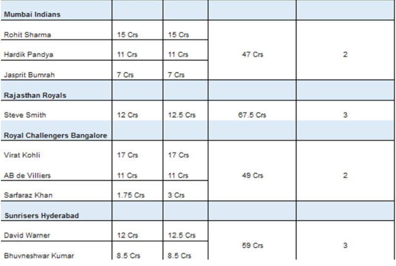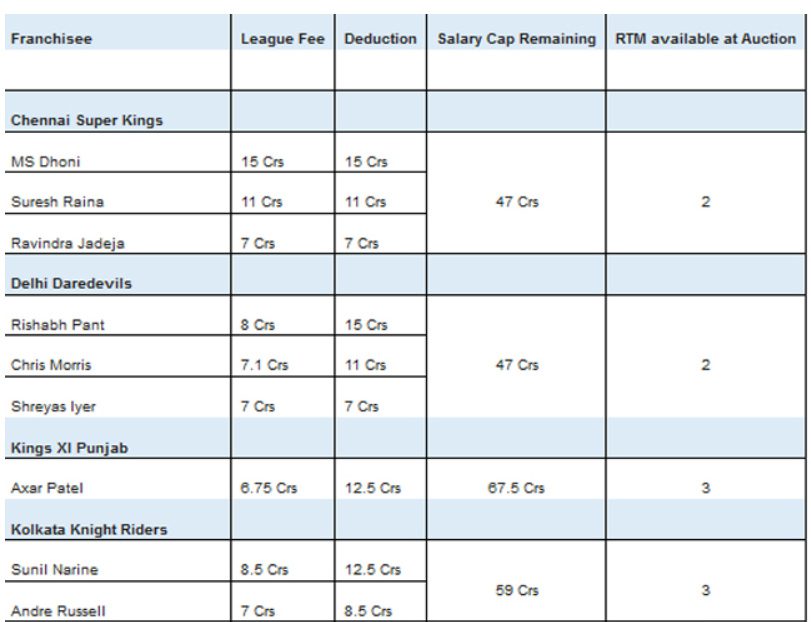 අයි.පී.එල් තරගාවලියට රඳවාගත් ක්රීඩක ලැයිස්තුව මෙන්න..