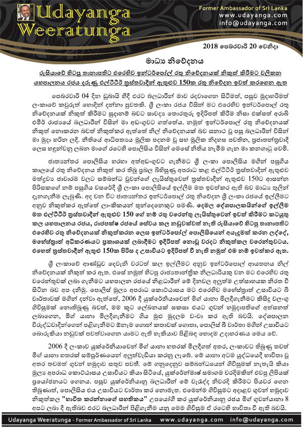 යහපාලනයේ රතු නිවේදනය ගැන උදයංග ගෙන් විශේෂ නිවේදනයක්…