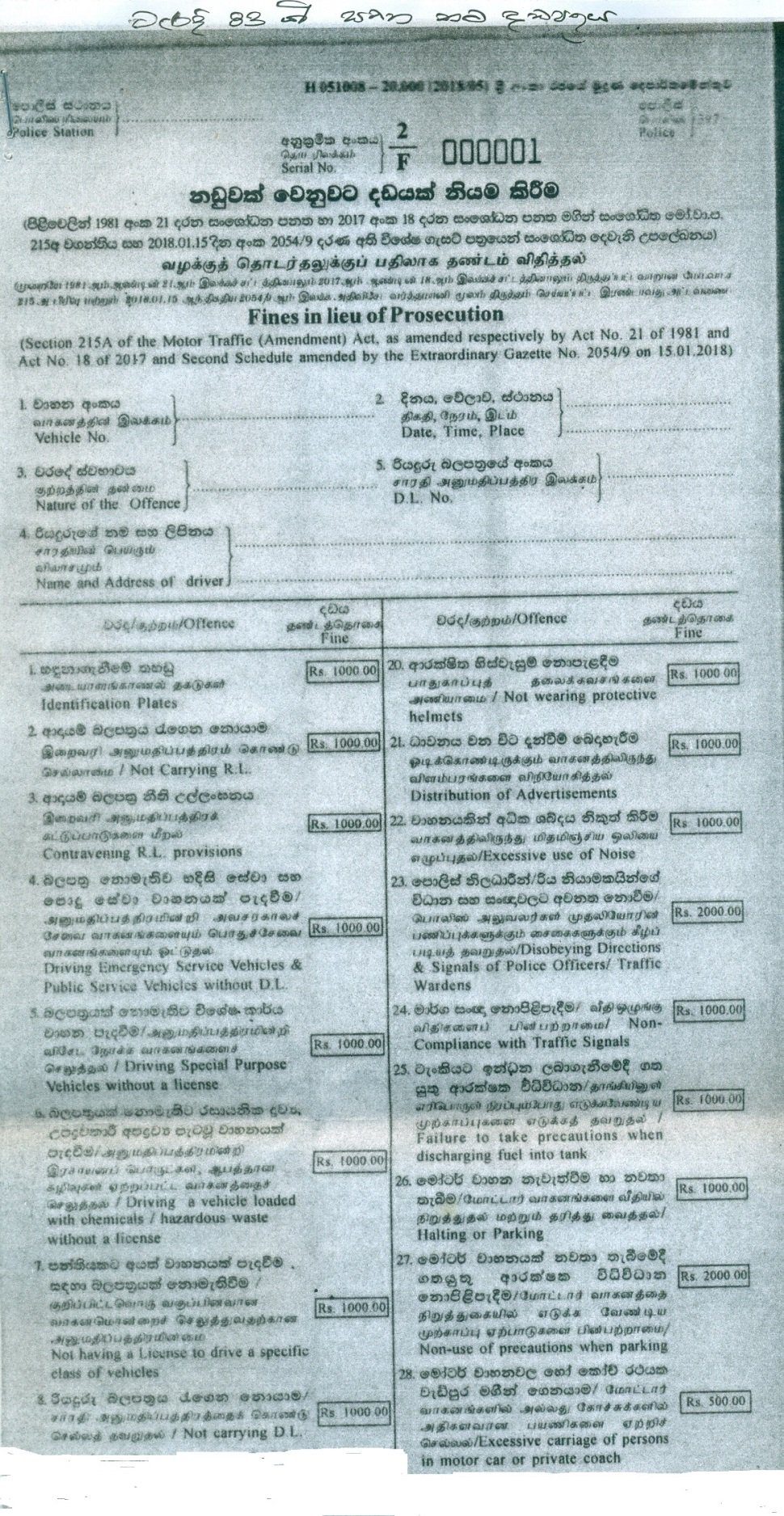 නව ස්ථානීය දඩ පත්‍රිකාව අද (15) සිට ක්‍රියාත්මකයි..