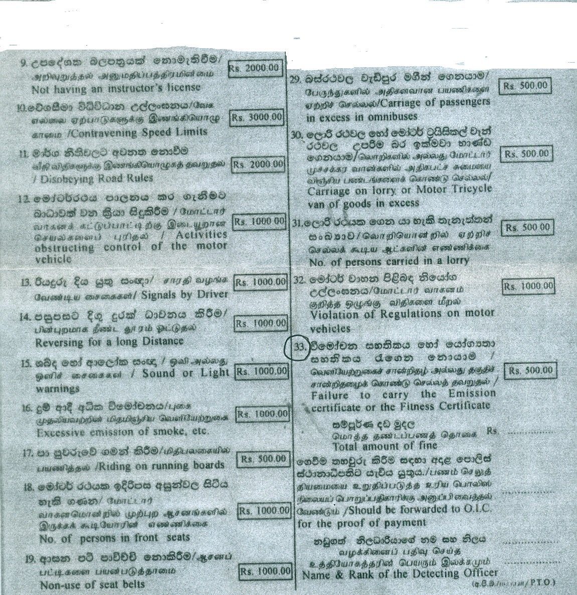 වැරදි 33ක් ඇතුළත් වන නව ස්ථානීය දඩ පත්‍රිකාව අද (15) දිනයේ සිට ක්‍රියාත්මක කරන බව පොලිස් මාධ්‍ය ප්‍රකාශක පොලිස් අධිකාරී රුවන් ගුණසේකර මහතා සදහන් කළේය.