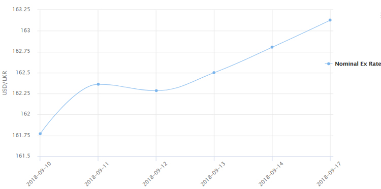 එක්සත් ජනපද ඩොලරයක ගැණුම් මිල රුපියල් 160.00 හා විකුණුම් මිල රු. 165.00 සීමාවන් ඉක්මවා ගිය පළමු අවස්ථාව මෙය වන අතර පසුගිය සිකුරාදා (14) දිනයේ දී ඩොලරයක විකුණුම් මිල මුල් වරට රුපියල් 164.00 සීමාව පසුකර ගොස් තිබුණි.