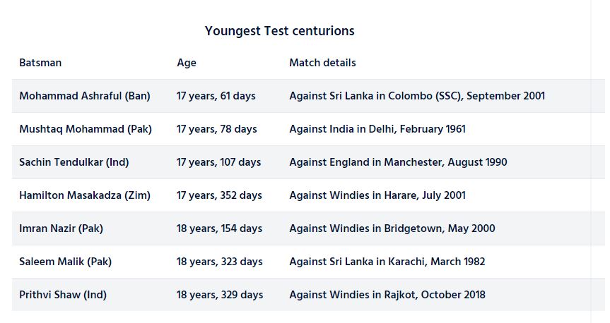 වයස අවුරුදු 18 යි දින 329 ක් වයසැති ප්රිතිවී ඉන්දීයාව වෙනුවෙන් ශතකයක් රැස් කළ ලාබාලම ක්රීඩකයා ලෙස වාර්තා පොත් අතර ලියැවෙයි.