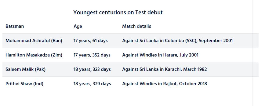 එසේම සිය මංගල තරගයේදිම ටෙස්ට් ශතකයක් වාර්තා කල ලාබාලම ක්රීඩකයා වීමේ වරමද ඔහු හිමී කර ගත්තේය.