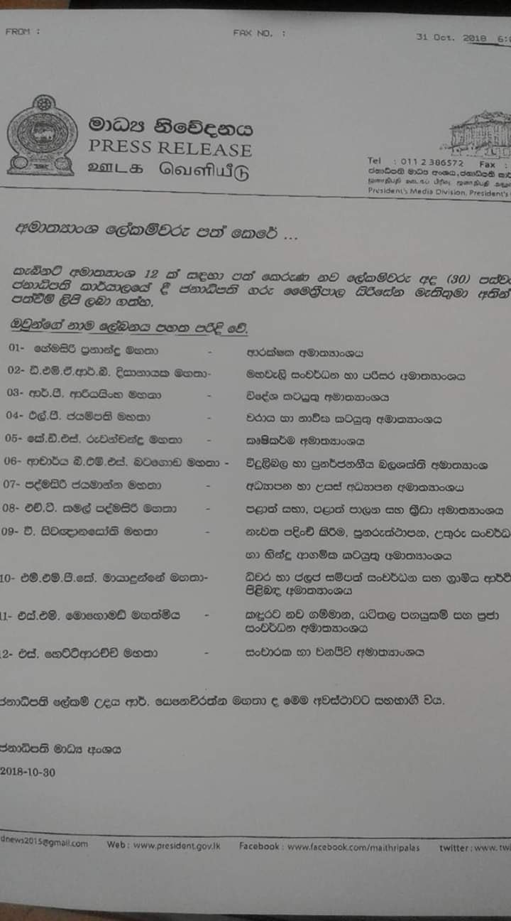 නව අමාත්යංශ ලේකම්වරු පත් කෙරෙති..