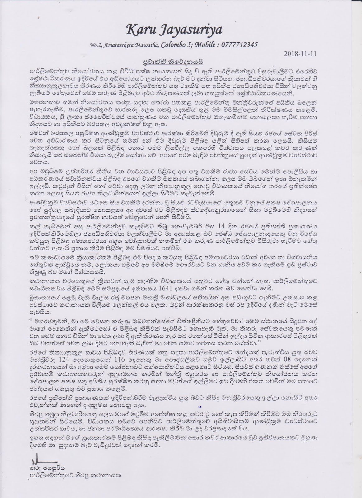 හිටපු කාථානායකගෙන් විශේෂ නිවේදනයක්..