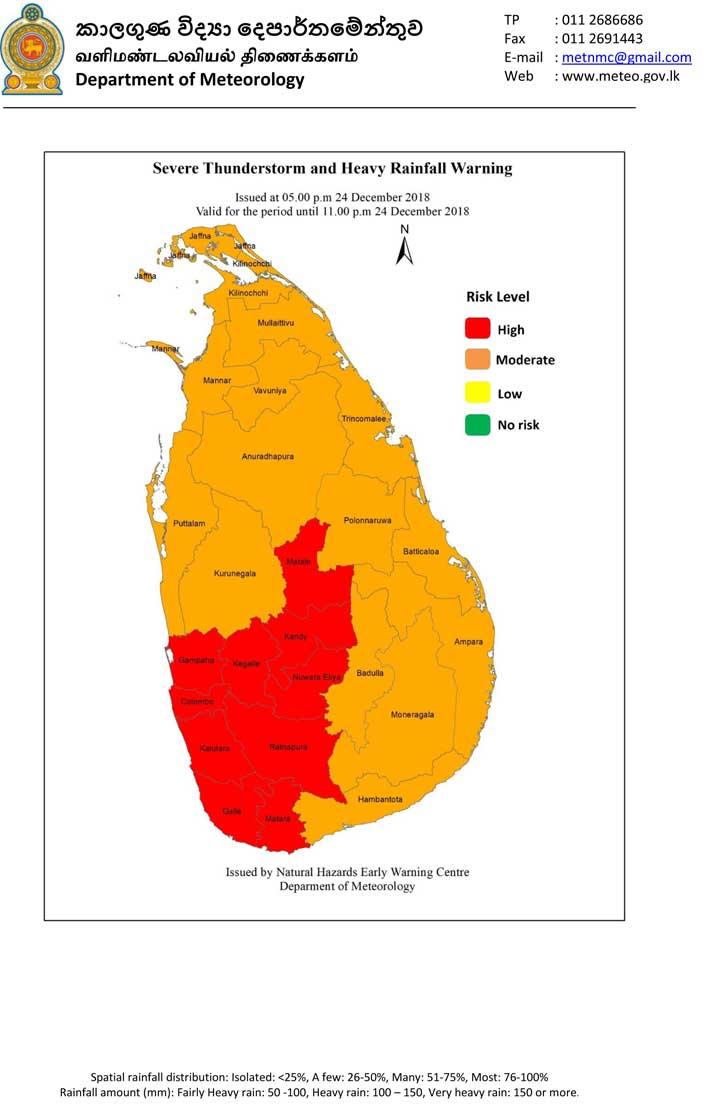 ප්රභල අකුණු හා තද වැසි පිළිබඳව අනතුරු අඟවීමේ නිවේදනයක් කාලගුණ විද්යා දෙපාර්තමේන්තුව විසින් නිකුත් කර තිබේ.