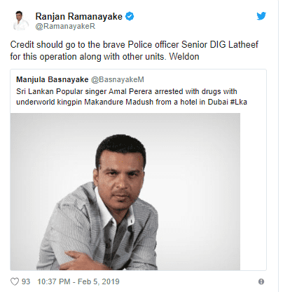 ප්රබල පාතල කල්ලි නායක මාකඳුරේ මධූෂ් අත්අඩංගුවට ගැනීමේ මෙහෙයුමේ ගෞරවය පොලිස් විශේෂ කාර්ය බළකායේ අණදෙන නිලධාරී ජ්යෙෂ්ඨ නියෝජ්ය පොලිස්පති එම්.ආර්. ලතීෆ් මහතාට හා ඔහුගේ කණ්ඩායමට හිමිවිය යුතු බව රාජ්ය අමාත්ය රන්ජන් රාමනායක මහතා පවසයි.