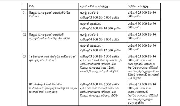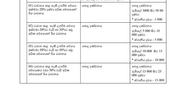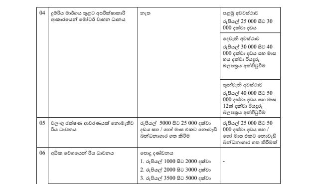 රථ වාහන වැරදි සඳහා 25,000 දඩය ගැසට් කෙරේ..